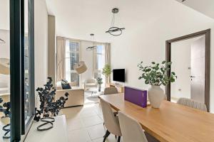 Questo appartamento ha 1 camera da letto, una cucina con frigorifero e forno, una lavatrice e 2 bagni con set di cortesia e asciugacapelli. Presso Silkhaus Cozy 1BR at Mangrove Place in Reem Island avrete a disposizione una TV.