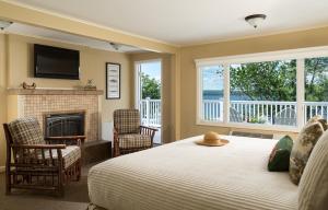 Guests will have a special experience as this suite offers a hot tub and a fireplace. The suite's kitchenette is available for cooking and storing food. The suite provides air conditioning, a coffee machine, a carpeted floor, a flat-screen TV with streaming services, as well as lake views. The unit offers 1 bed.