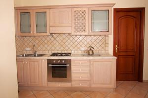 Appartamento climatizzato dotato di TV satellitare a schermo piatto e tavolo da pranzo. L'angolo cottura è completamente arredato.