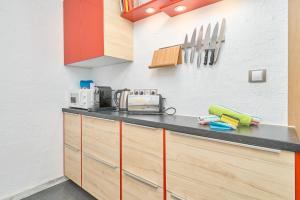Questo appartamento presenta 3 camere da letto, 1 bagno, lenzuola, asciugamani, una TV con canali satellitari, una cucina con utensili e un balcone con la vista sulla città.