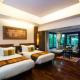 Fornite di arredi in legno pregiato, decorazioni dalle tonalità calde, aria condizionata, balcone privato e TV a schermo piatto da 42 pollici, le camere possiedono bagni adiacenti con vasca e doccia separate.