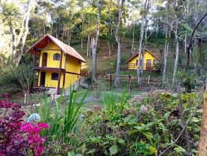 Each unit comes with a terrace offering mountain views, a satellite flat-screen TV, a dining area, a well-fitted kitchen and a private bathroom with shower. A kettle, fridge, microwave, and oven are also provided at Sitio Recanto da Paz Chalés - casa e chalé para temporada. The units feature a desk.