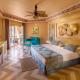 All accommodation is air conditioned and fitted with a balcony or French window opening onto a private terrace with garden or sea views. Each is decorated with canopied beds and custom-made curtains. Room service is available.