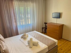 Featuring a private entrance, this air-conditioned holiday home consists of 1 living room, 2 separate bedrooms and 1 bathroom with a shower. Guests will find a stovetop, a refrigerator, kitchenware and an oven in the fully equipped kitchen. The holiday home also offers a barbecue. The holiday home provides a washing machine, a coffee machine, a dining area as well as a terrace with garden views. V této ubytovací jednotce je k dispozici 3 postele.