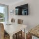 La maison de vacances climatisée au Six Palms 2A - Vitamin Sea dispose d'un coin salon, d'une cuisine avec réfrigérateur et d'une télévision.