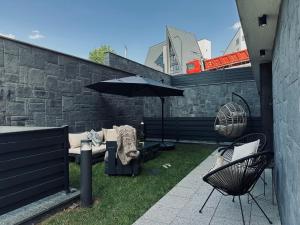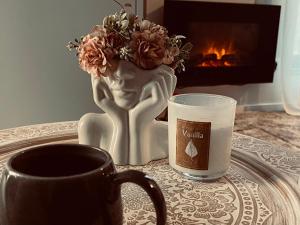 This studio's standout feature is the fireplace. In the kitchen, guests will find a stovetop, a refrigerator, a dishwasher and kitchenware. The studio offers a washing machine, a private entrance, a terrace with garden views as well as a private bathroom featuring a shower. The unit offers 2 beds.