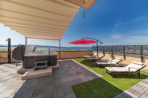 This apartment's special feature is the hot tub. This spacious apartment consists of 1 living room, 2 separate bedrooms and 2 bathrooms with a walk-in shower and free toiletries. Guests will find a refrigerator, a dishwasher, kitchenware and an oven in the kitchen. The apartment also offers a barbecue. The air-conditioned apartment provides a flat-screen TV with streaming services, a washing machine, a minibar, a coffee machine as well as sea views. The unit offers 4 beds.