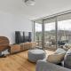 Questo appartamento con 2 camere da letto prevede un soggiorno con TV con canali via cavo, una cucina con utensili, frigorifero e lavastoviglie, e 2 bagni con asciugacapelli.