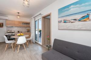Boasting a private entrance, this air-conditioned apartment includes 1 living room, 1 separate bedroom and 1 bathroom with a shower and a hairdryer. Guests can make meals in the kitchen that is fitted with a refrigerator, kitchenware, an oven and a toaster. Featuring a terrace with sea views, this apartment also offers a washing machine and a flat-screen TV with streaming services. V této ubytovací jednotce se nachází 2 postele.