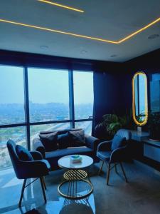Klimatizovaný apartmán ubytování tvoří 1 ložnice, plně vybavená kuchyň s lednicí a troubou a 1 koupelna. V koupelně ubytování Sky-high studio naleznete sprchu, vanu a toaletní potřeby zdarma.