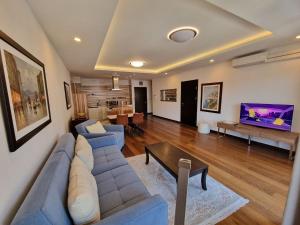 This apartment's standout features are the private pool and hot tub. Featuring a private entrance, this air-conditioned apartment consists of 1 living room, 1 separate bedroom and 2 bathrooms with a bath and a hairdryer. Meals can be prepared in the kitchen, which is equipped with a stovetop, a refrigerator, a dishwasher and kitchenware. The spacious apartment provides a flat-screen TV, a washing machine, soundproof walls, a seating area as well as sea views. The unit offers 3 beds.