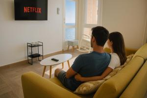 Klimatizovaný apartmán Skyline - Beach apartment with breathtaking views and more nabízí 1 ložnici, posezení a 1 koupelnu s fénem a toaletními potřebami zdarma. Tento apartmán s výhledem na město má satelitní TV s plochou obrazovkou, kuchyň s dobrým vybavením včetně lednice, myčky nádobí a trouby a koupelnu.