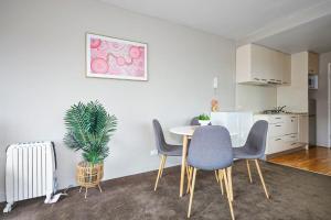 Apartament w Sleek and Stylish Studio Apartment on Spencer posiada 1 sypialnię, w pełni wyposażoną kuchnię z lodówką i zmywarką oraz 1 łazienkę. Ręczniki i pościel są dostępne w apartamencie Sleek and Stylish Studio Apartment on Spencer.