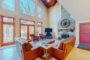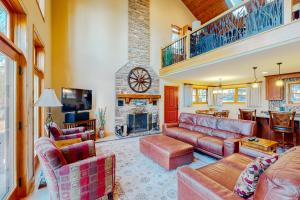 This holiday home features a fireplace. Boasting a private entrance, this spacious holiday home also features 6 separate bedrooms, 4 bathrooms, a living room and a seating area. Guests can make meals in the kitchen that has a stovetop, a refrigerator, a dishwasher and kitchenware. The air-conditioned holiday home features a flat-screen TV with cable channels, a tea and coffee maker, a dining area, a barbecue as well as lake views. The unit has 9 beds.