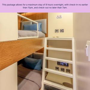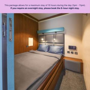 This package includes a large pillow, 100% cotton bed sheet and a fleece blanket. Elegant French design, solid wood and packed with features for a comfortable stay makes the new sleep ’n fly FlexiSuite the Sleep Pod of choice, even for extended airport transit periods. Resembling the latest in airline first class suites rather than a Pod in the classic sense we launched this new state-of-the-art sleep concept during the summer of 2020. FlexiSuite features include a 90°-180° seat to flat-bed with individually controlled back and footrests connecting with a fixed ottoman seat, a 200x70 cm leather surface area for a comfortable rest, overhead carry-on baggage storage, a coat hanger, large mirror and all LED indirect lighting with dimmer switch for a cozy ambience. Further amenities comprise power/USB sockets, a reading light, a solid wooden folding table (which doubles as a small desk), a small waste bin, cup holders as well as lots of storage space for your shoes, tablet or mobile phone. Each FlexiSuite further features individually controlled air-condition, a 32” screen to be connected to your laptop, tablet or smartphone via HDMI (adapter provided, own headset to be brought by guest). For privacy the FlexiSuite has sound proofing and is lockable from the inside, with a large green or red LED lighting strip on its façade showing the occupancy status. This description refers to a max. 8 hour overnight stay only between 23:00 hrs (11pm) on date of arrival and 07:00 hrs (7am) on date of departure.