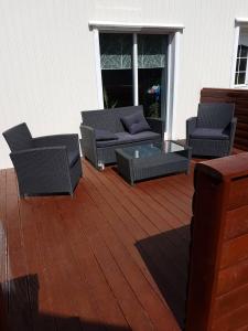 Featuring a private entrance, this air-conditioned holiday home consists of 1 living room, 1 separate bedroom and 1 bathroom with a walk-in shower and a hairdryer. Guests will find a stovetop, a refrigerator, a dishwasher and kitchenware in the well-fitted kitchen. The holiday home also offers a barbecue. Boasting a terrace with sea views, this holiday home also provides a washing machine and a flat-screen TV with streaming services. The unit offers 3 beds.
