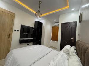 L'alloggio di Smart 1 bedroom apartment Yaba include 1 camera da letto, cucina e TV a schermo piatto.