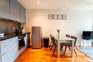 This apartment is comprised of 1 bedroom, a kitchen and 1 bathroom with a bath and a shower. The well-fitted kitchen features a refrigerator, a dishwasher, kitchenware and an oven. The apartment offers a washing machine, an electric kettle, tumble dryer, heating, as well as a TV with streaming services. The unit offers 1 bed.