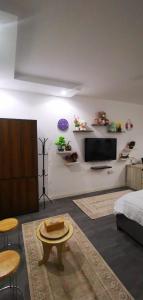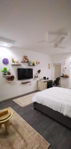 Este apartamento en SOHAR-muj tiene aire acondicionado, 1 dormitorio, TV de pantalla plana y zona de cocina.