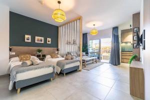 This studio offers a pool with a view. Meals can be prepared in the kitchen, which comes with a refrigerator, kitchenware, a microwave and a tea and coffee maker. The studio provides air conditioning, a washing machine, a terrace with sea views as well as a private bathroom featuring a walk-in shower. The unit provides 3 beds.