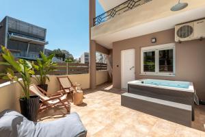 This apartment offers a hot tub. Featuring a private entrance, this air-conditioned apartment comprises 1 living room, 1 separate bedroom and 1 bathroom with a bath and a shower. Meals can be prepared in the kitchen, which comes with a refrigerator, a dishwasher, an oven and a microwave. Boasting a terrace with city views, this apartment also provides a washing machine and a flat-screen TV with streaming services. V této ubytovací jednotce je k dispozici 2 postele.