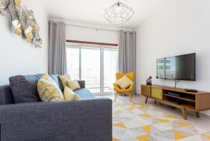 Solemar - Pools Fast WIFI AC - Portimão comprend une chambre, une salle de bains, du linge de lit, des serviettes, une télévision par câble à écran plat, un coin repas, une cuisine équipée et un balcon avec vue sur la ville.