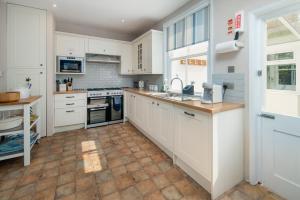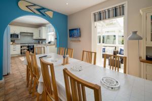 Rooms: 1This holiday home has an upstairs lounge with sea views, a dining area, a kitchen, patio with outside seating and a garden.