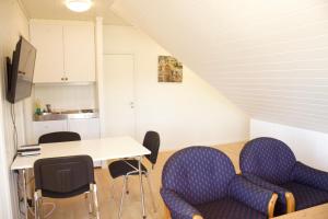 Die Unterkunft verfügt über einen Balkon, eine gut ausgestattete Küche, ein eigenes Bad sowie einen Sitzbereich mit einem Flachbild-TV und einem Sofa.