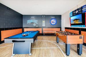 Tento prázdninový dům s klimatizací má 6 ložnice, kuchyň s kompletním vybavením včetně lednice a myčky nádobí a 5 koupelny. V koupelně ubytování Solterra Stunner at White Rose Villas with Stunning Lake Views - Access to Resort Amenities - Game Room - Family Friendly - Nr Disney nechybí sprcha ani fén.