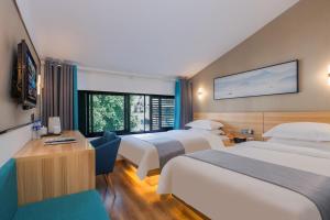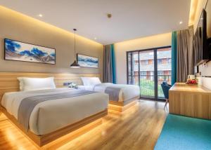 At the hotel, every room is equipped with a desk and a flat-screen TV. The private bathroom at Songshe Hotel - Yangshuo West Street includes a bidet, free toiletries, and a hairdryer.