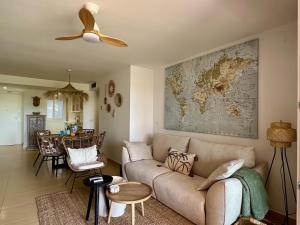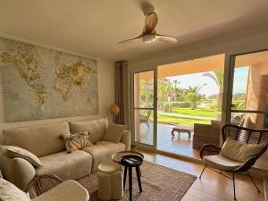 Apartmán Sonrisa Garden - Mar Menor Golf Resort poskytuje 2 ložnice, 2 koupelny, ložní prádlo, ručníky, satelitní TV s plochou obrazovkou, jídelní kout a plně vybavenou kuchyň. Z terasy ubytování ubytování je výhled na bazén. Klimatizovaný apartmán Sonrisa Garden - Mar Menor Golf Resort zahrnuje posezení, pračku a koupelnu s fénem.