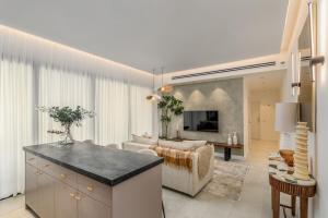 L'appartamento con 1 camera da letto di Soothing & charming by Sea U TLV include un soggiorno con TV a schermo piatto e una cucina.