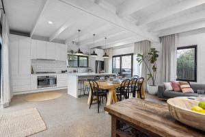 Dieses Ferienhaus ist eingerichtet mit 5 Schlafzimmern, 4 Badezimmern, Bettwäsche. Das Sorrento Beach House ist mit Handtüchern, einem TV, einer voll ausgestatteten Küche sowie einer Veranda mit Stadtblick ausgestattet.