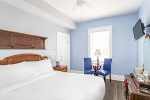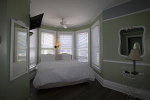 This honeymoon room features a 2-person spa bath underneath a vintage crystal chandelier. Extras include an antique walnut armoire. The room has a private entrance and access to a deck with a wrought-iron table and 2 chairs.