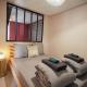 Die Unterkunft Spa sous le Mokuren - Escapade Zen à Blois verfügt über 2 Schlafzimmer, 1 Badezimmer mit einer Dusche und einem Whirlpool, einen Sitzbereich und eine Küche mit einem Kühlschrank. In dieser Ferienwohnung werden Handtücher und Bettwäsche zur Verfügung gestellt.