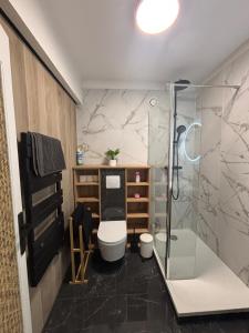 Apartmán ubytování zahrnuje 1 ložnici, 1 koupelnu, ložní prádlo, ručníky, TV s plochou obrazovkou, jídelní kout a plně vybavenou kuchyň. Z balkonu ubytování Spacieux studio proche gare se nabízí výhled na město. Ubytování Spacieux studio proche gare zahrnuje koupelnu s toaletními potřebami zdarma.
