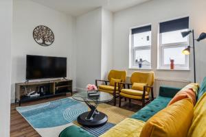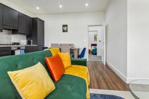 The well-equipped kitchen has a refrigerator, kitchenware, an oven and a microwave. The spacious apartment features a washing machine, a private entrance, a tea and coffee maker, a seating area and a flat-screen TV with streaming services. The unit has 5 beds.