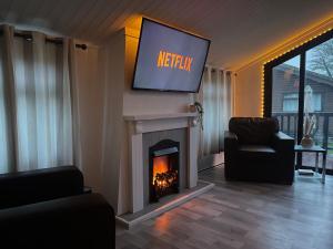 This mobile home features a fireplace. This mobile home comprises 1 living room, 3 separate bedrooms and 2 bathrooms with a bath and a shower. The well-equipped kitchen features a stovetop, a refrigerator, a dishwasher and kitchenware. Featuring a terrace with lake views, this mobile home also provides a seating area and a flat-screen TV with streaming services. The unit offers 5 beds.