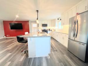 Boasting a private entrance, this air-conditioned holiday home includes 1 living room, 4 separate bedrooms and 3 bathrooms with a walk-in shower and a bath. In the kitchen, guests will find a stovetop, a refrigerator, a dishwasher and kitchenware. A seating area with a flat-screen TV, a washing machine and a patio are offered in this spacious holiday home. The unit is furnished with 6 beds.