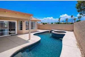 This holiday home's standout features are the private pool, hot tub and fireplace. Meals can be prepared in the kitchen, which comes with a stovetop, a refrigerator, a dishwasher and kitchenware. The spacious air-conditioned holiday home provides a flat-screen TV, a washing machine, a private entrance, a tea and coffee maker as well as garden views. The unit offers 4 beds.