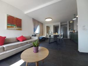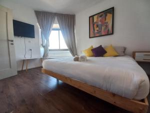 L'appartement Spacious Neve Tzedek Apartment dispose d'une chambre, d'une télévision à écran plat, de la climatisation et d'un salon.
