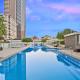 The pool with a view and hot tub are the special features of this apartment. This spacious apartment consists of 1 living room, 2 separate bedrooms and 2 bathrooms with a walk-in shower and free toiletries. Guests will find a stovetop, a refrigerator, a dishwasher and kitchenware in the well-equipped kitchen. The apartment also offers a barbecue. The air-conditioned apartment provides a flat-screen TV, a washing machine, a tea and coffee maker, a seating area as well as sea views. The unit offers 3 beds.