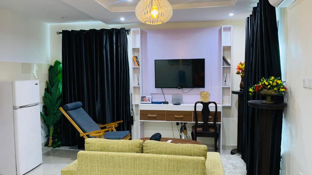 The apartment has a flat-screen TV, air conditioning, a wardrobe, as well as heating. The unit has 1 bed.