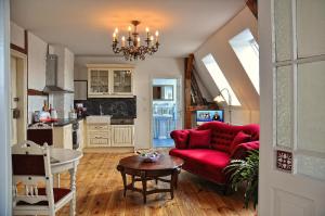 This apartment features a seating area, flat-screen satellite TV, and a fully equipped kitchen.