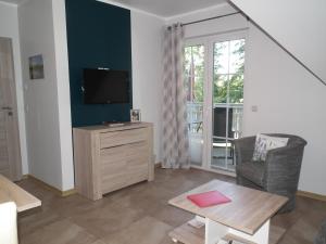 This apartment has a balcony or terrace, a living room with sofa and flat-screen satellite TV, and a well-equipped kitchen with dishwasher, coffee machine and oven.