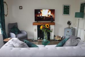 Guests will have a special experience as this holiday home offers a fireplace. Featuring a private entrance, this holiday home is comprised of 1 living room, 2 separate bedrooms and 1 bathroom with a bath and a shower. In the well-equipped kitchen, guests will find a stovetop, a refrigerator, an oven and a microwave. This holiday home features a washing machine, a tea and coffee maker, a TV with streaming services and a terrace. The unit offers 3 beds.