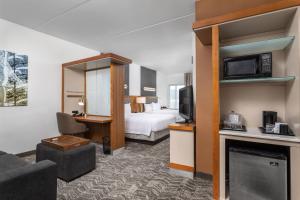 This room features a cable TV, microwave, small refrigerator. A small seating area is also included.