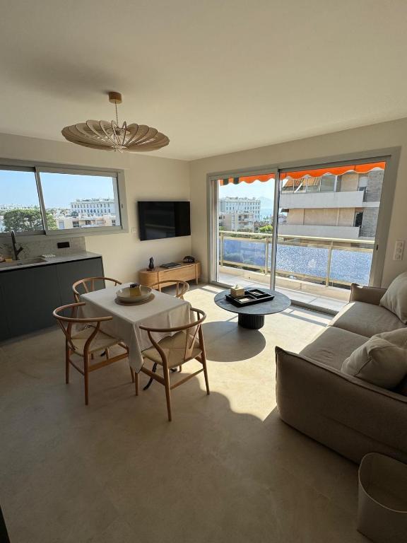 Klimatizovaný apartmán v Square Croisette nabízí 2 ložnice, TV s plochou obrazovkou, jídelní kout, kuchyň s lednicí a obývací prostor.
