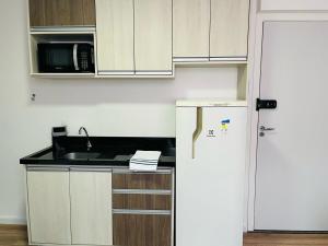 Das SRB210 - Studio Tranquilo CWB verfügt über ein Schlafzimmer, einen Flachbild-TV und eine Küche.