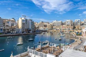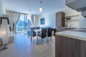 Cet appartement compte 2 chambres, une cuisine avec un réfrigérateur et un four, une télévision à écran plat, un coin salon, ainsi que 2 salles de bains comportant une douche. St Julians Seafront fournit des serviettes et du linge de lit.